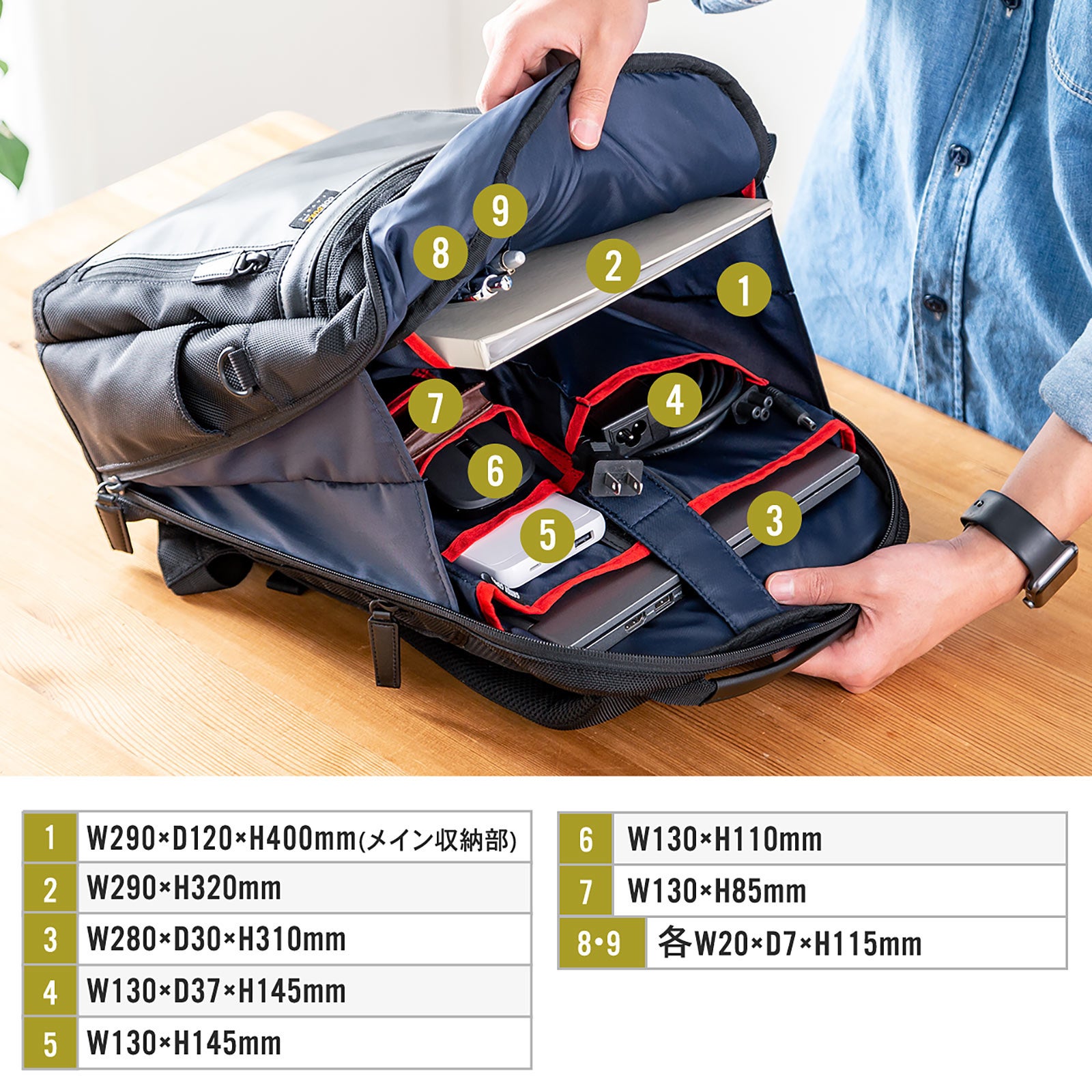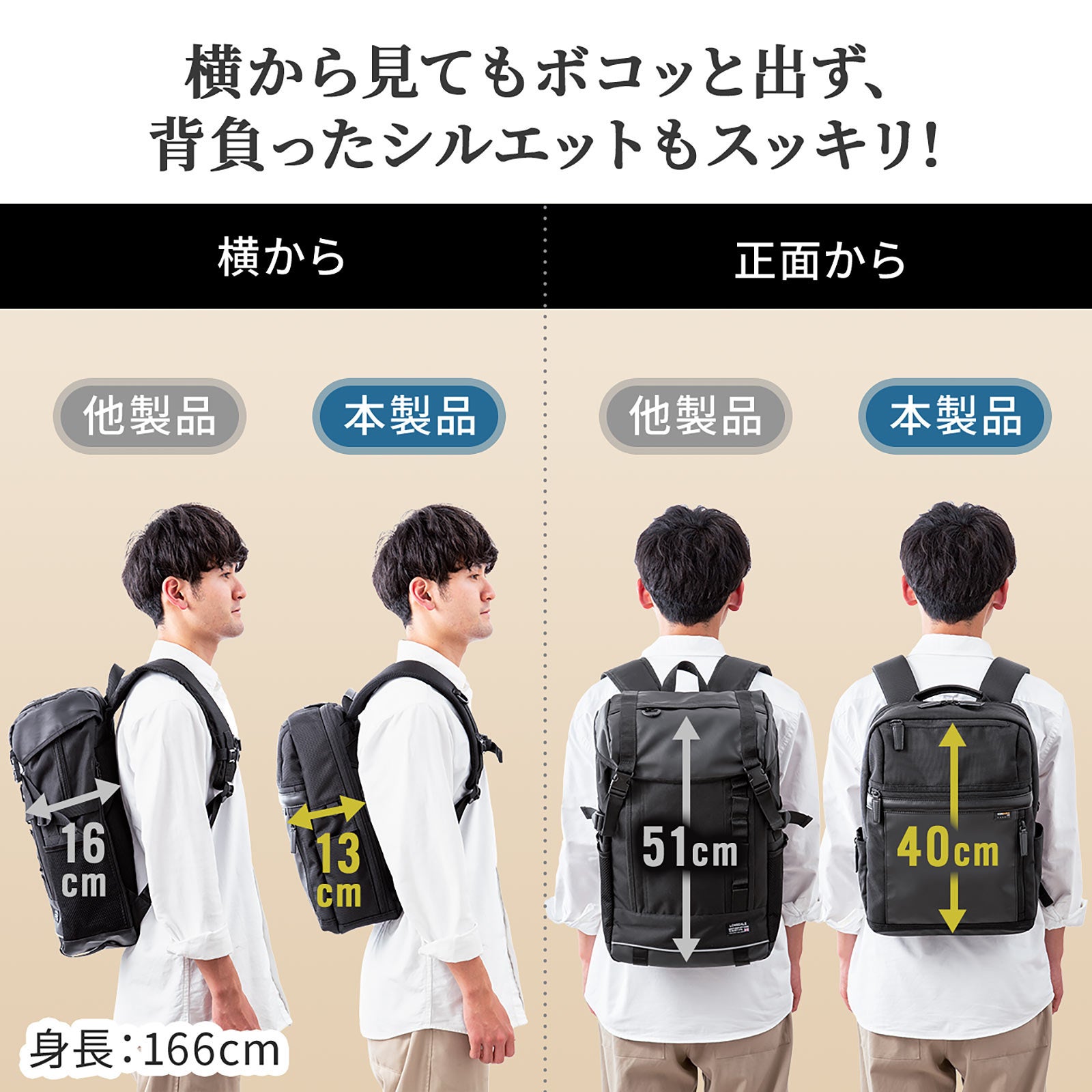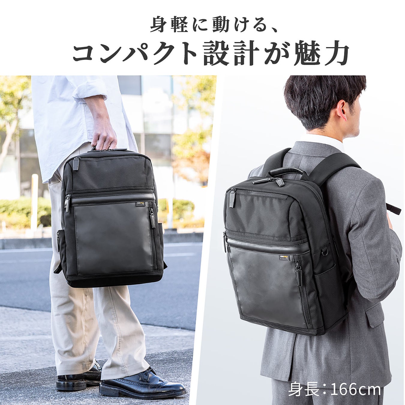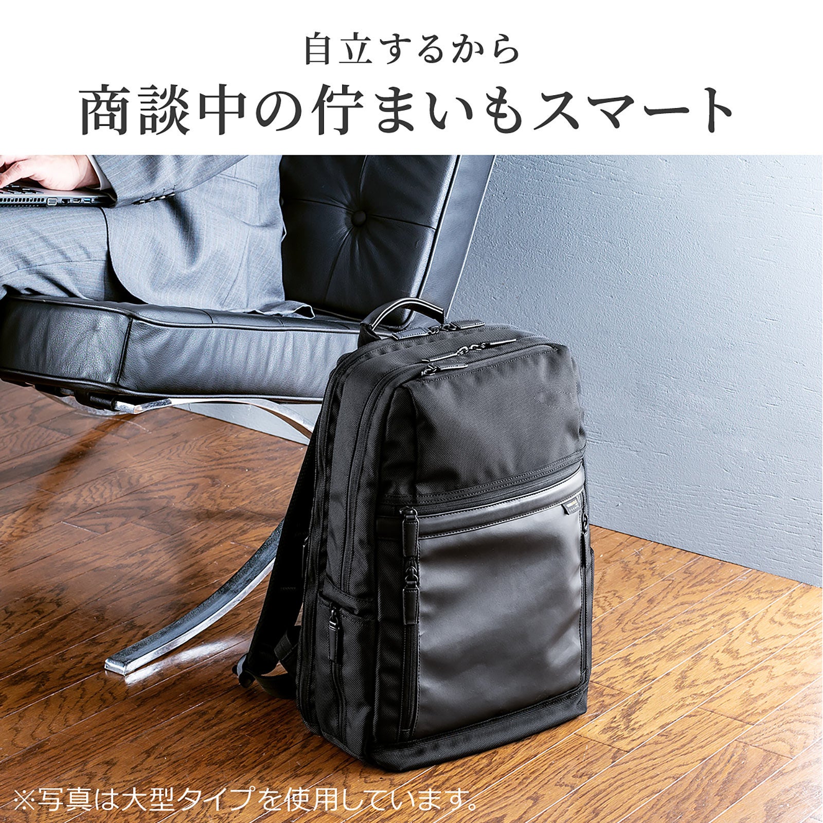 本製品は、毎日の通勤やモバイルワークに適した小型ビジネスリュックです。