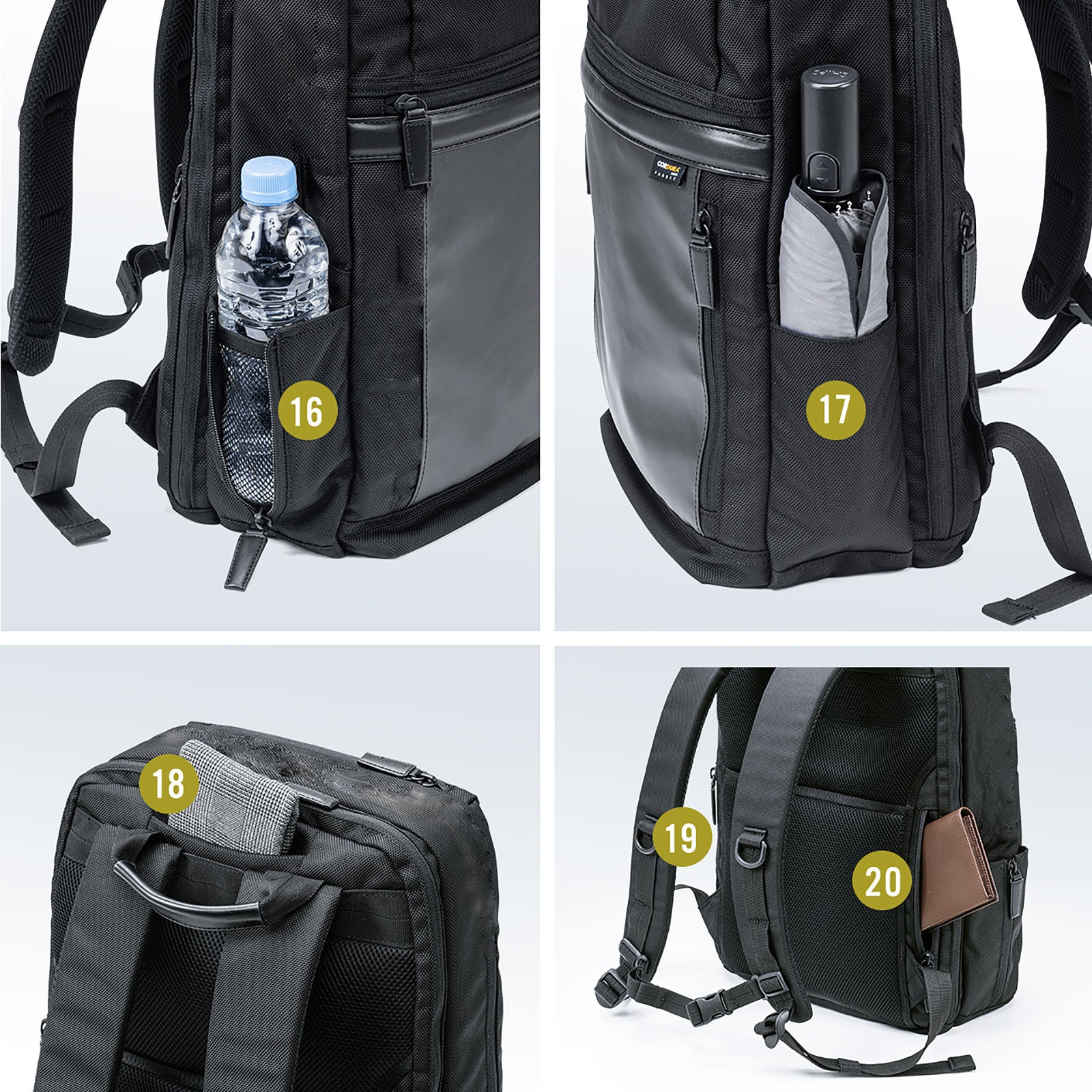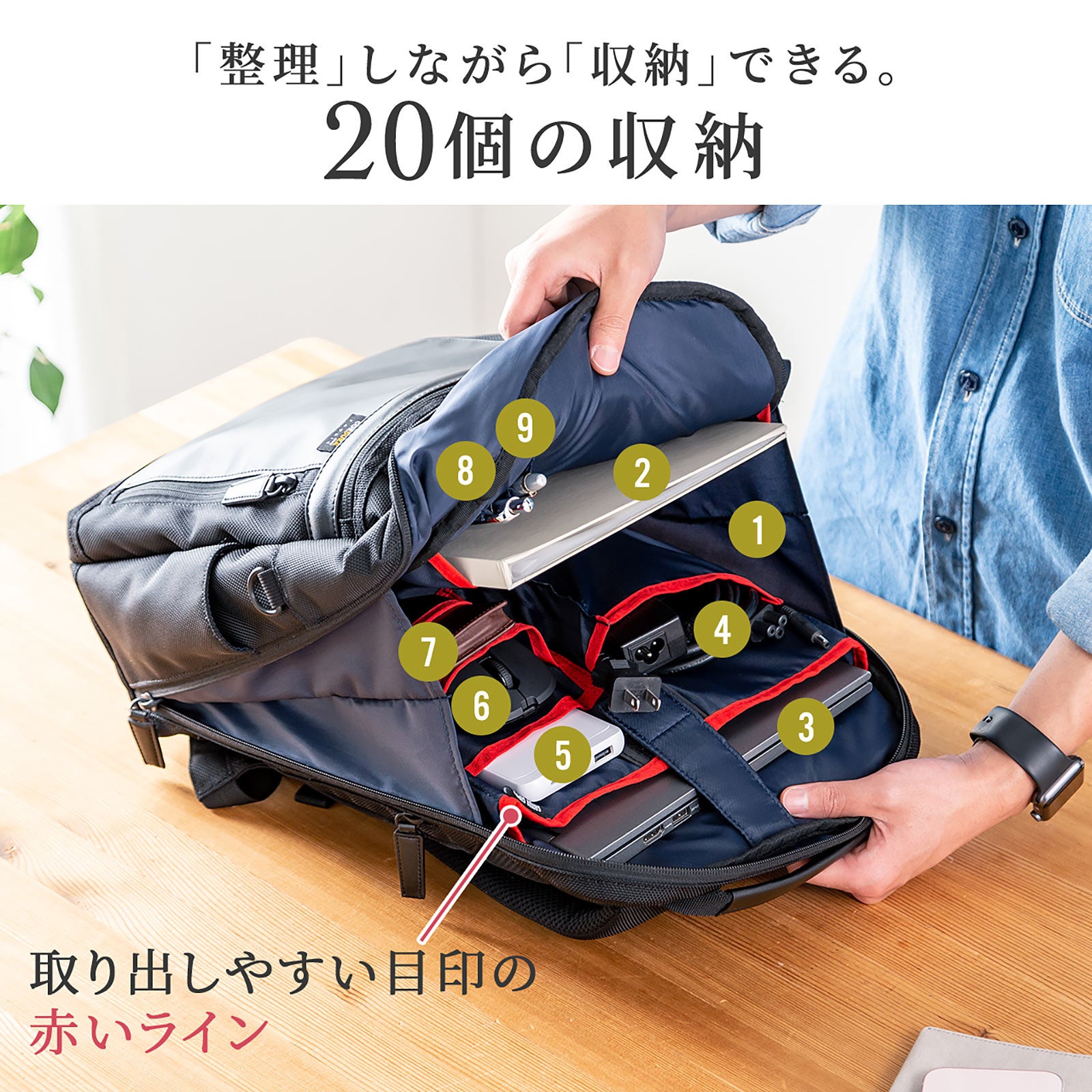 合計20個あるポケットを使って荷物を整理しながら収納できます。
