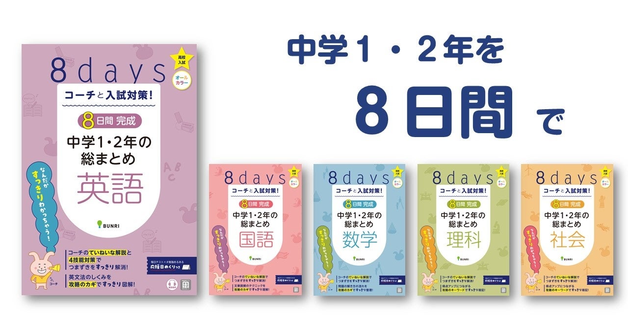 …入試対策の初めに取り組みたい、「中学1・2年で習った範囲の復習」を8日間で終わらせることができます。