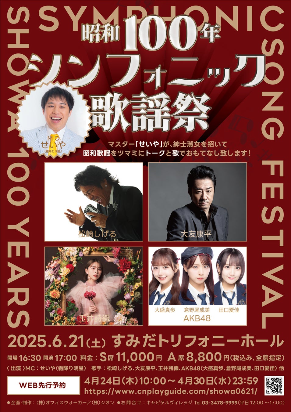 6/21(土)「昭和100年シンフォニック歌謡祭」をすみだトリフォニーホールで開催 ~昭和の名曲をフルオーケストラとスペシャルなトークで彩る音楽イベント~