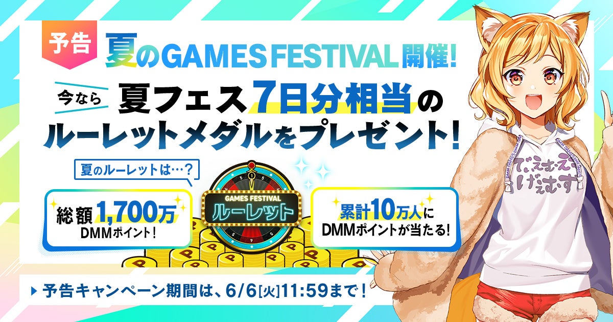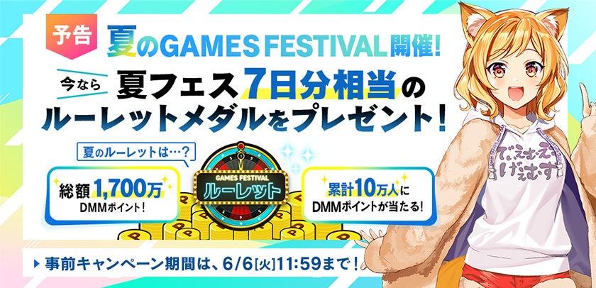 DMMポイントが当たるルーレットメダルを最大30枚プレゼント!『夏のDMM GAMES FESTIVAL』事前キャンペーン開催!