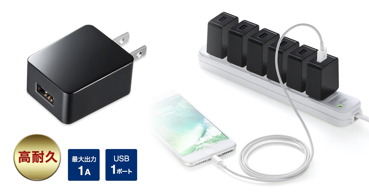 品名:USB充電器(1A・高耐久タイプ・ブラック)