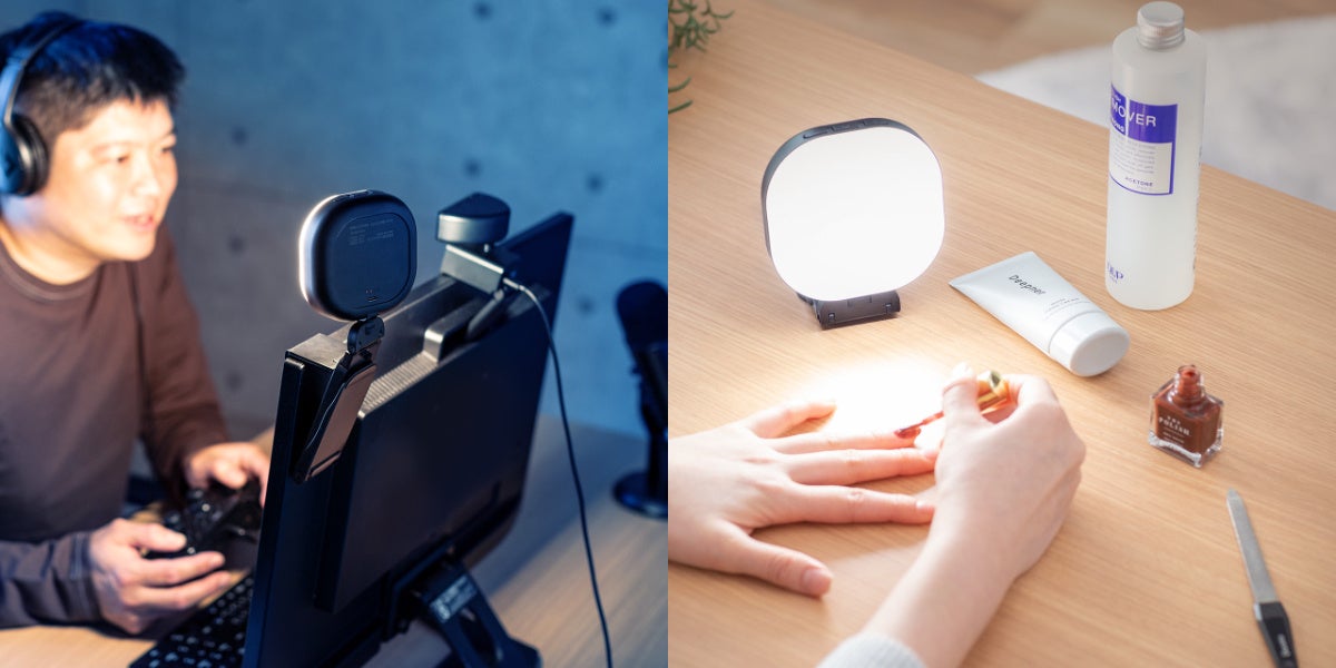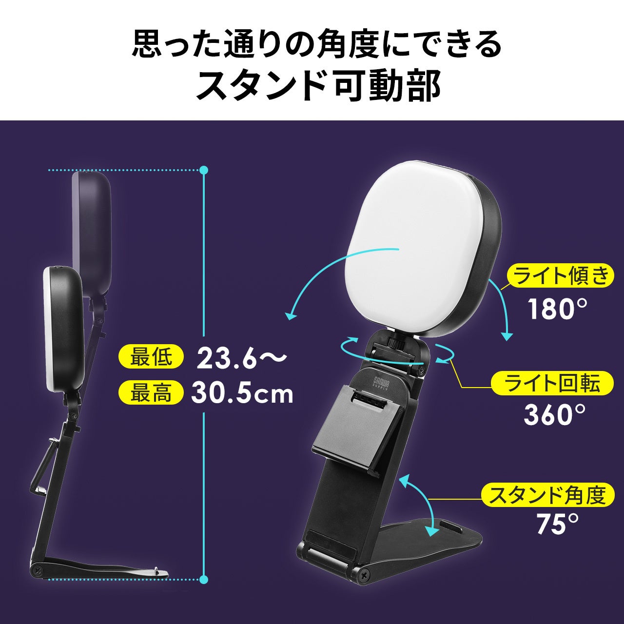 LEDライトの高さや傾き、角度の調整が可能です。動画配信やオンライン会議・レッスンなどで表情や対象物を明るく照らすことができます。