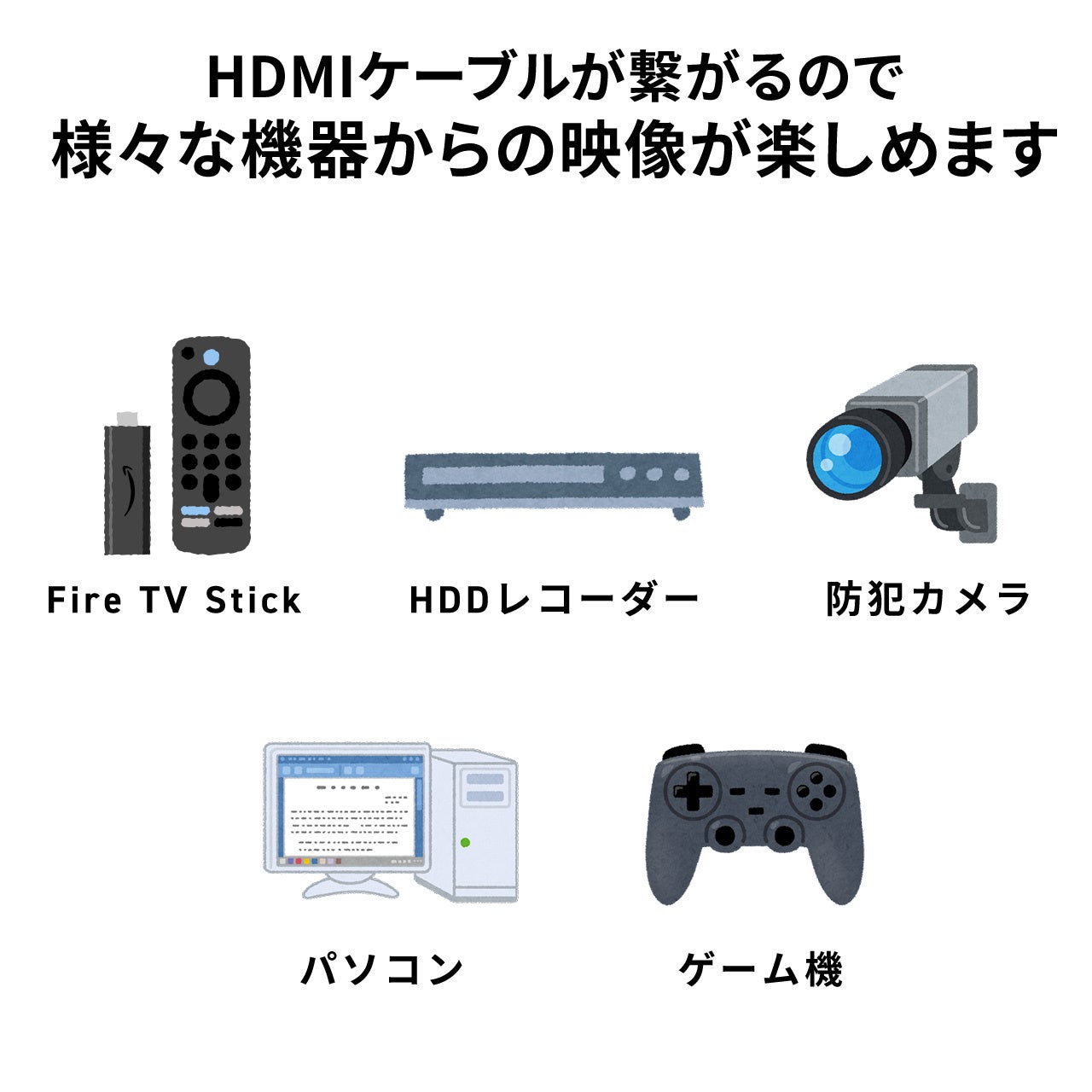 HDMI出力ポートを搭載していますので外部入力を持つテレビや、テレビチューナーを持たないパソコン用ディスプレイなどでも地上・BS・110度CS・STB(CATV)デジタル放送を楽しむことができます。HDMI入力を2ポート搭載しており、パソコンやHDDレコーダーなど各種HDMI機器映像を表示させることも可能です。(分割表示/全画面表示対応)