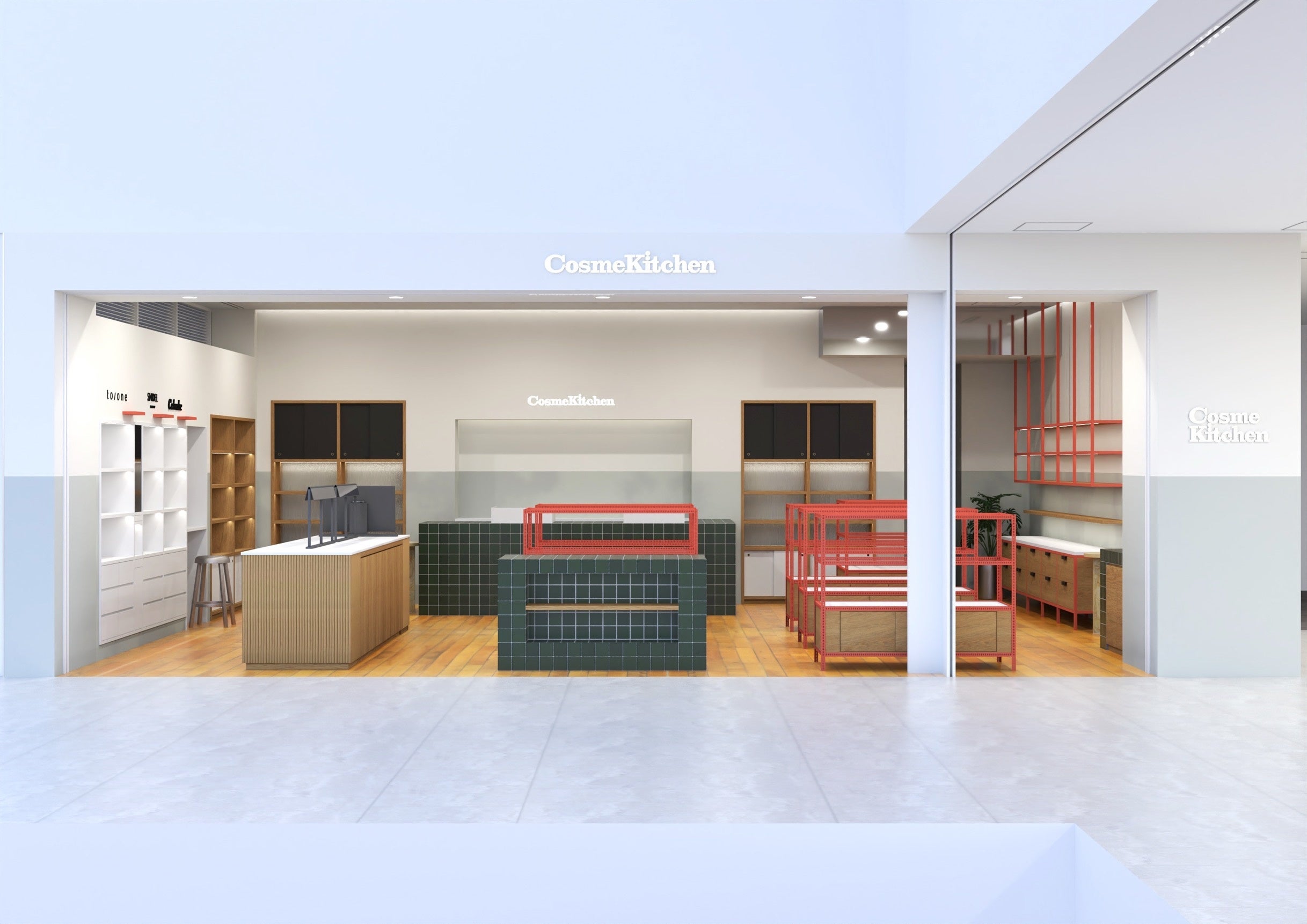 オーガニックラバーが住むパリのアパルトマンの“KITCHEN”をイメージした店内は、今を象徴する近代的かつ機械的な素材や色を取り入れつつ、店内の各所にはDIYを感じる素材や仕様があしらわれ、手仕事を感じるディテールをエッセンスとして加えることで、コスメキッチンが当初から大切にしている、フレンドリーで安心する空間を表現しています。ほっとするような居心地と、新鮮なワクワク感のあるお買い物を、お楽しみいただけます。