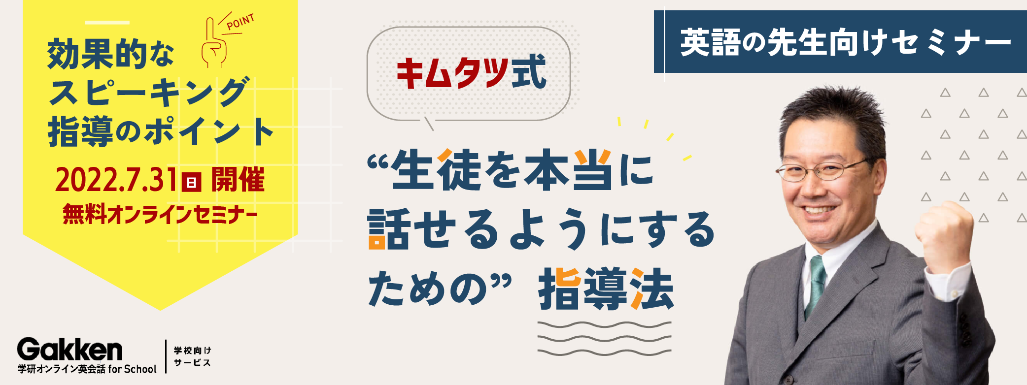【7/31開催】キムタツ式“生徒を本当に話せるようにするため”の指導法とは? 学研主催 中高の先生方向け 英語教育無料オンラインセミナー