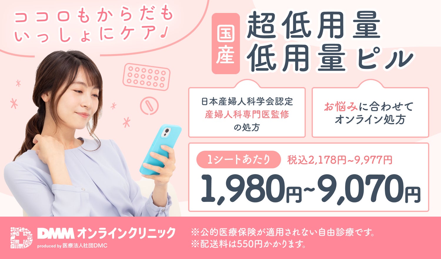 「DMMオンラインクリニック」低用量ピル4種の定期配送価格を1か月分の購入価格から30%オフの1,980円で提供
