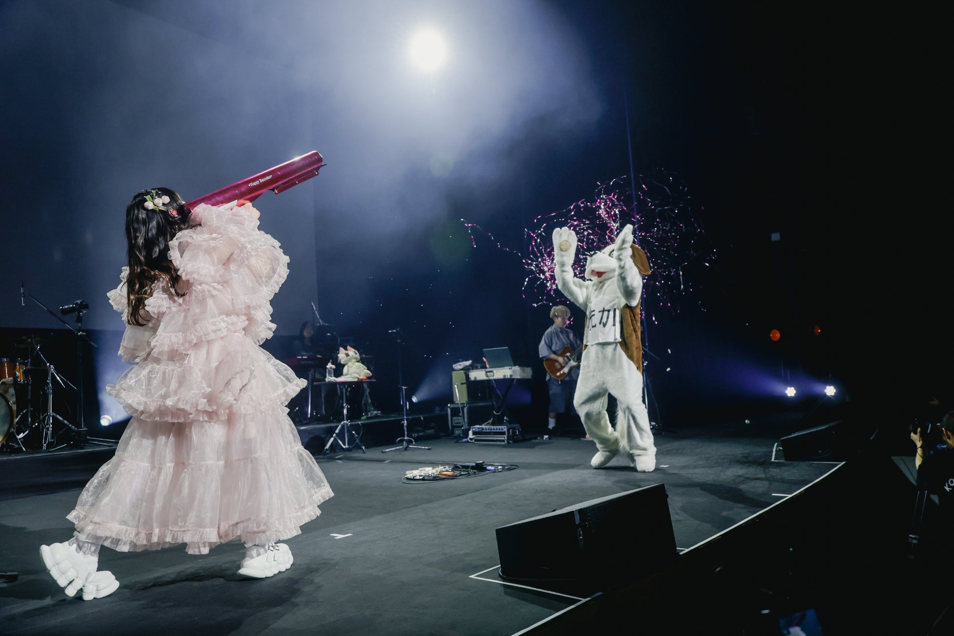 コレサワは「今年ももうすぐ終わっちゃうけど、みんなはどんな2024年を過ごしましたか?」と語りかけ「私は今年はとてもいい年だったなぁって思います」と振り返る。2本のツアーや多数のテレビ出演に加え、超ときめき♡宣伝部に提供した「最上級にかわいいの!」で日本レコード大賞の作詞賞を受賞するなど、今年はコレサワのキャリアを語るに欠かせない実りのある1年となったはずだ。そんな振り返りトークの最中、突然窓の外にサンタクロースが横切り、驚くコレサワ。サンタが現れたことを信じてくれないメンバーに対し、「寝たフリしたらサンタさんが来てくれるかもしれないからさ、寝る準備しようよ」と提案。メンバー全員でナイトキャップを被って消灯すると、足音が聞こえ、ステージにプレゼントが置かれる。窓の外には、役目を終えたサンタがうさぎに姿を変えて、夜空へ飛び立っていく様子が見えた。