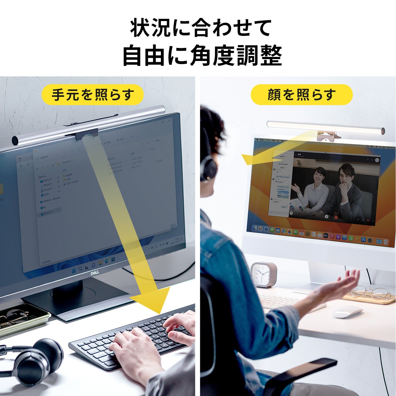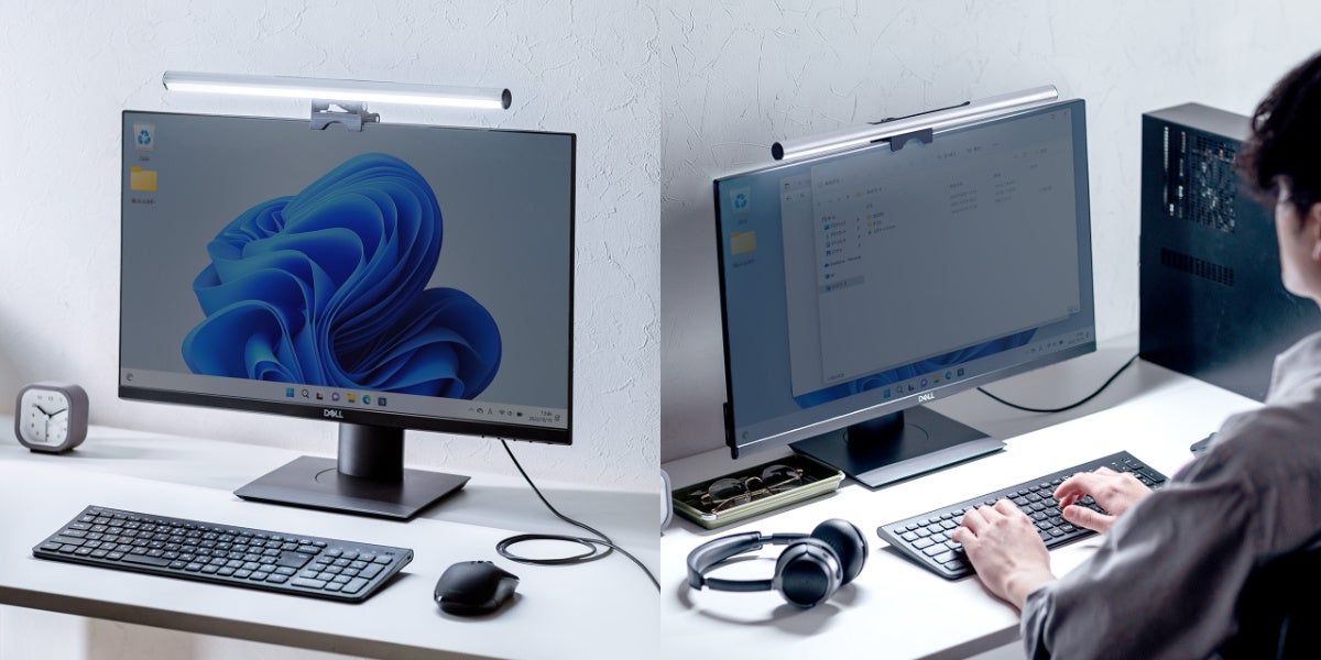 本製品は、モニターなどの上部にクリップで挟み込んで使用するLEDライトです。モニター上部に設置でき、デスク上に場所を取らずに設置できます。