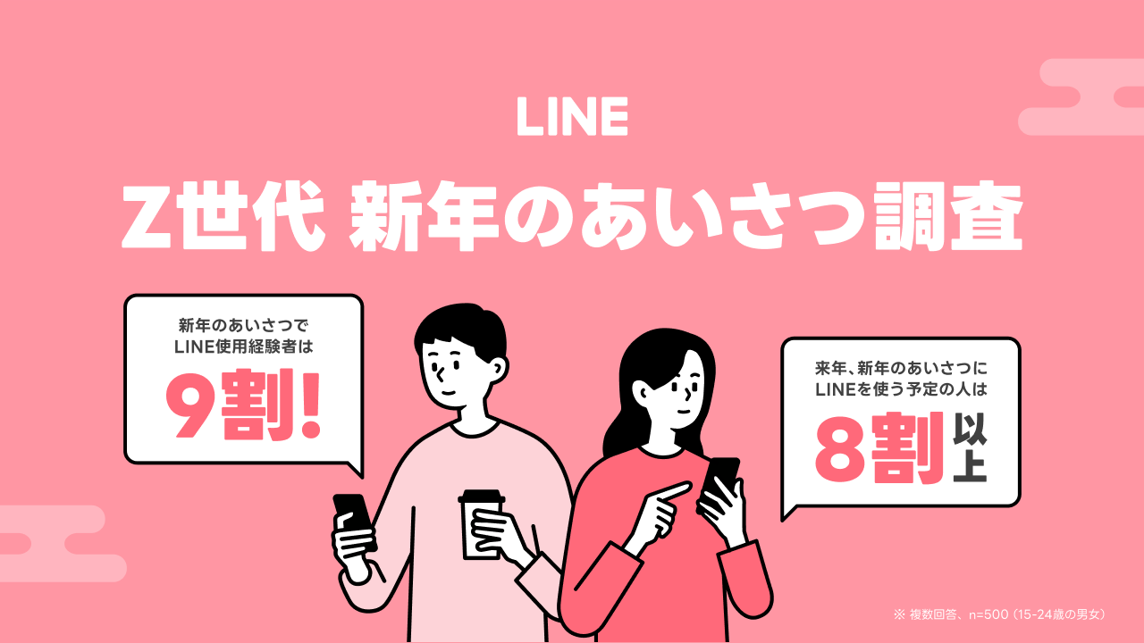 LINE株式会社(本社:東京都新宿区、代表取締役社長:出澤 剛)は、年末年始のコミュニケーションをLINEスタンプで気軽に楽しめる『あけおめスタンプ2023』の販売を12月1日(木)より順次開始しています。今回、15~24歳の男女500名のZ世代を対象に、「新年の挨拶」に関する調査を実施しましたので、その結果をお知らせいたします。