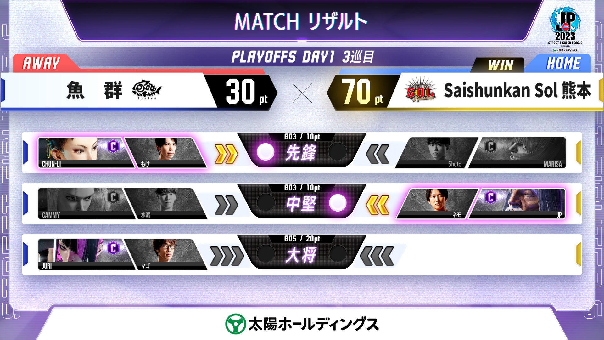 プレイオフDAY 1:2nd STAGE 4位「魚群」 vs 3位「Saishunkan Sol 熊本」