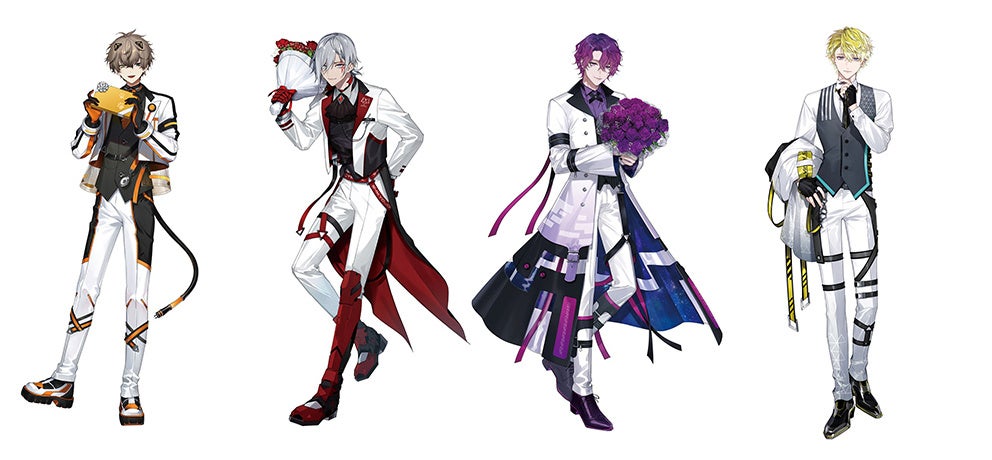 △1周年を記念した撮りおろしビジュアル【左から Alban Knox(アルバーン・ノックス)、Fulgur Ovid(ファルガー・オーヴィド)、Uki Violeta(浮奇・ヴィオレタ)、Sonny Brisko(サニー・ブリスコー)】
