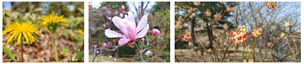 春の花々(タンポポ、シデコブシ、ミツマタ)