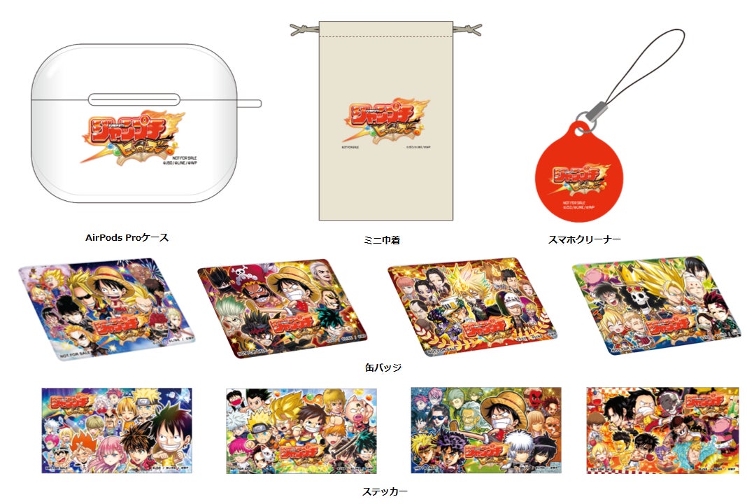 「ジャンプチ ヒーローズ」が「ジャンプフェスタ2023」に出展いたします。歴代のジャンプキャラクターがちりばめられたブース内では、フォトブースや巨大スマートフォンでゲームが遊べる試遊台、間違い探しコーナーなど、ご来場いただく皆さまが楽しめる盛りだくさんな内容となっております。また、イベント限定の「ジャンプチ ヒーローズ」オリジナルノベルティとして、AirPods Proケース、ミニ巾着、スマホクリーナー、缶バッジ、ステッカーなどをご用意しております。さらに、当日「ジャンプチ ヒーローズ」ブースにご来場頂いた方に先着で「ジャンプチオリジナルショッパー」をプレゼントいたします。ぜひ、お立ち寄りください。