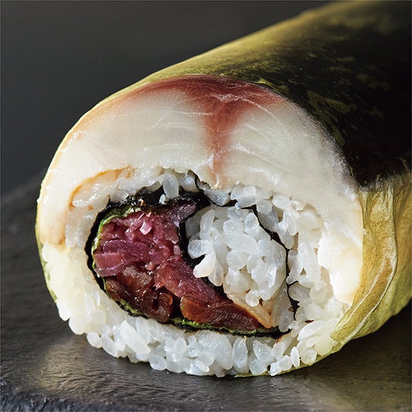 鹿児島県長島町で育った、脂乗りがよく身厚な「むじょかさば」を使用しています。独自の製法で酢締めすることで、酸味と塩味をしっかりと効かせ、かんぴょうのコクのある甘味とみょうが酢漬けの清涼感ある爽やかさで、口に入れたときの一体感のあるおいしさがポイントです。