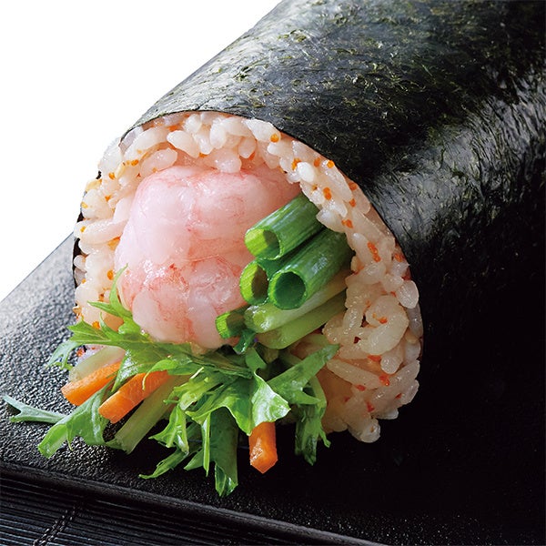 日本海の冷たい海で育った福井の甘えびを使用した太巻です。口に入れたときにとろっとした甘さが際立つひと品です。