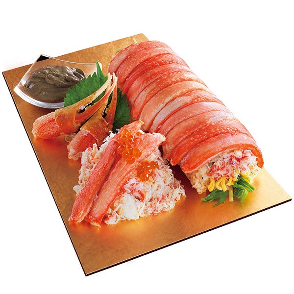かにを贅沢に使用した太巻のほか、「かに棒肉」「かに爪」「かに味噌」など、様々な部位を楽しむことができる、かに尽くしの贅沢な盛合せです。