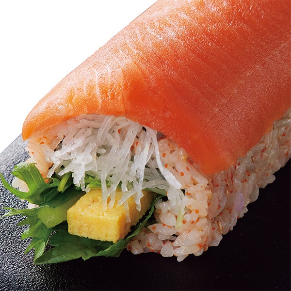 宮城県三陸で育ち、7月に水揚げしたサーモンを使用した太巻です。