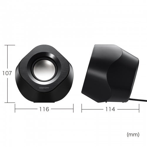 丸形のコンパクトな形状で場所を取らず、モニター下への設置や、パソコン横に設置するのに最適です。 サイズは幅116×奥行き114×高さ107mmです。