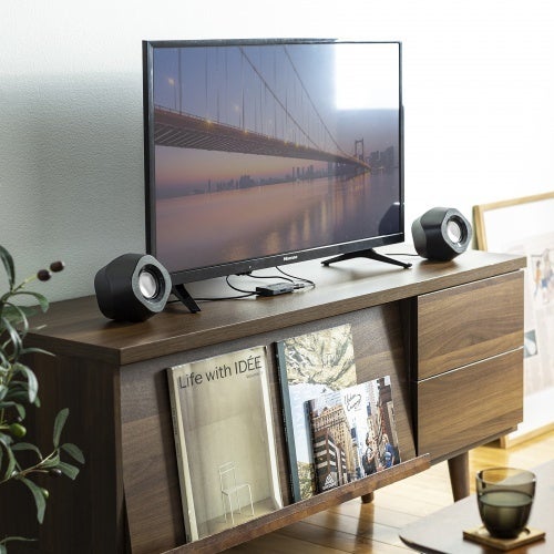 「MM-SPBT6BK」は、様々な音響機器で使えるコンパクトスピーカーです。 Bluetooth、USB、3.5mmステレオミニプラグの3WAY接続が可能で、Bluetooth内蔵のスマートフォンやタブレットにペアリングして使ったり、パソコンにUSB接続したり、汎用性の高い3.5mmステレオミニプラグでテレビや音響機器と接続したり、様々な機器で使用できます。