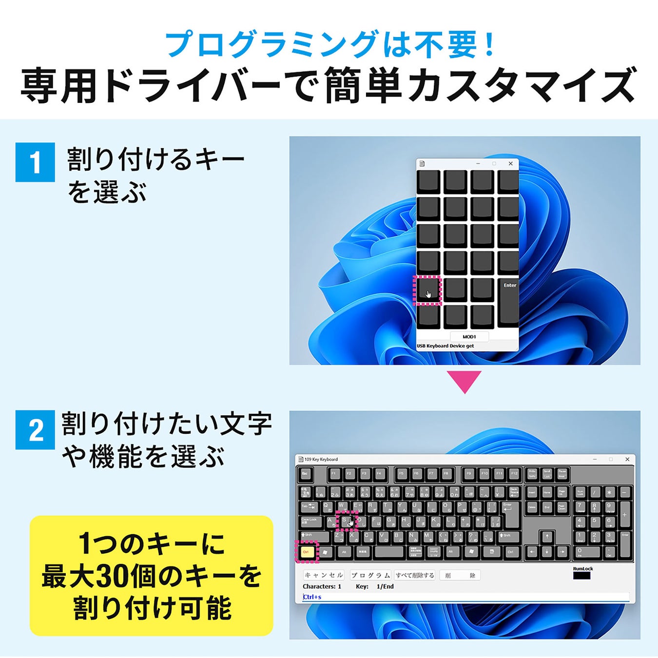 割り付けた機能はテンキーのメモリーに保存され、一度設定すればドライバの入っていないパソコンでも同じ機能を使えます。