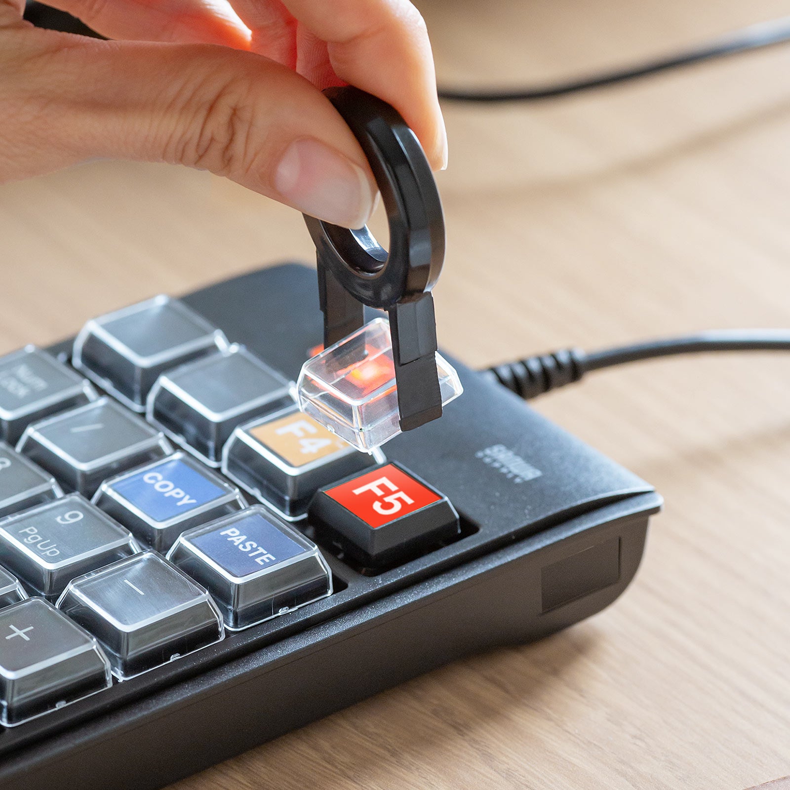 キートップのカバーを取り外して、割り付けたショートカット機能を示すラベルなどを挟めます。