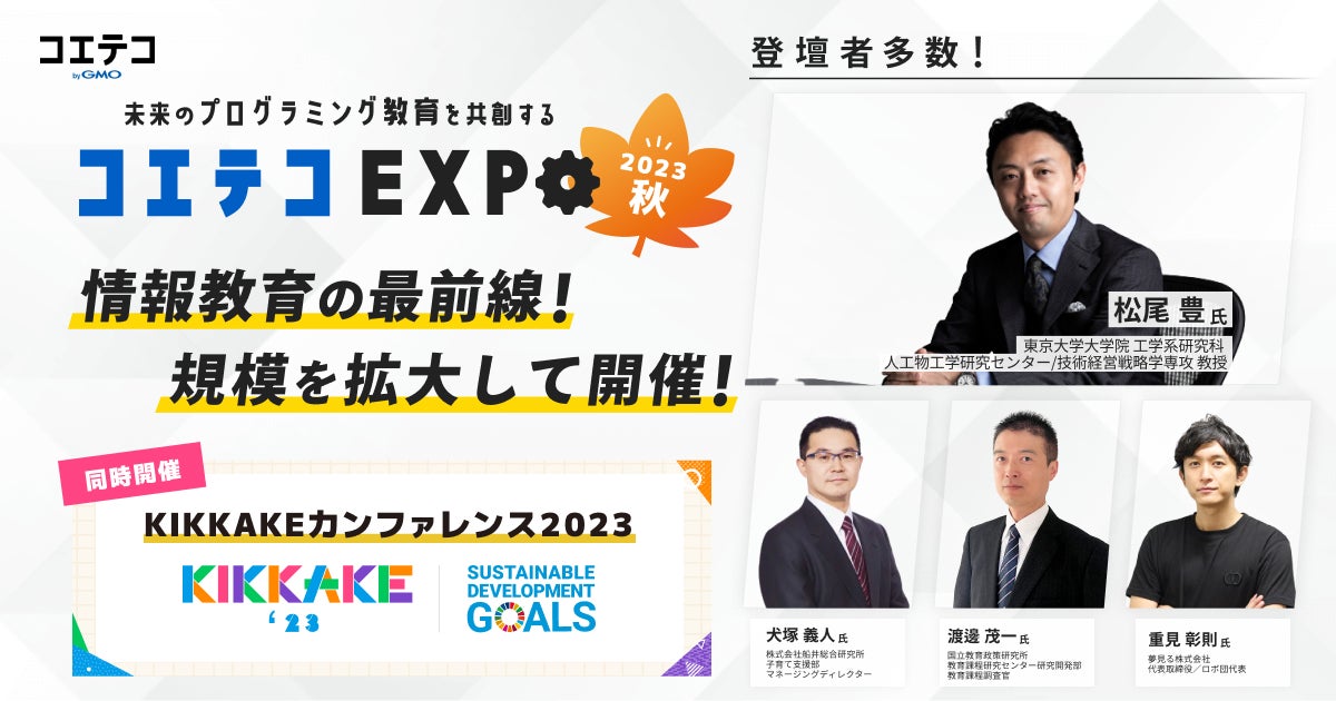 新時代のプログラミング教育を解剖する『コエテコEXPO 2023秋』開催!AI研究の第一人者である東大の松尾豊教授や文科省・経産省から情報教育現場の最前線リーダーが登壇【GMOメディア】