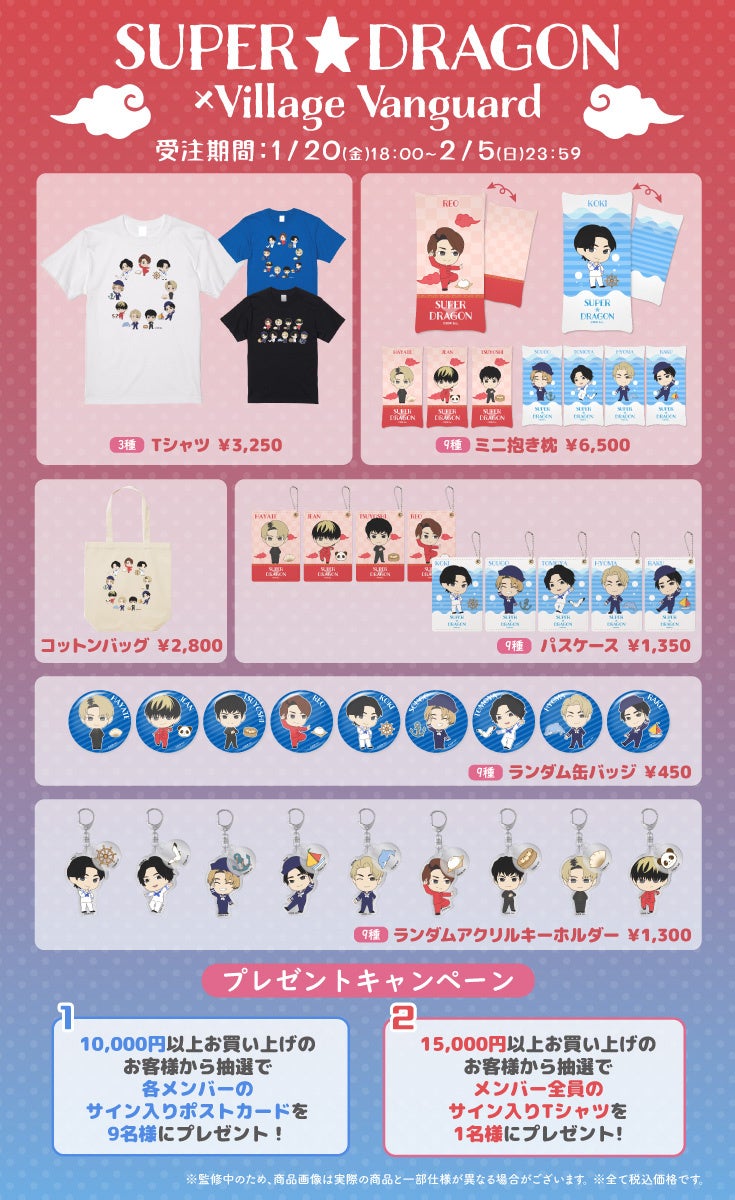 2023年1月20日(金)より、大人気9人組ミクスチャーユニット『SUPER★DRAGON』のヴィレッジヴァンガード限定グッズが発売!