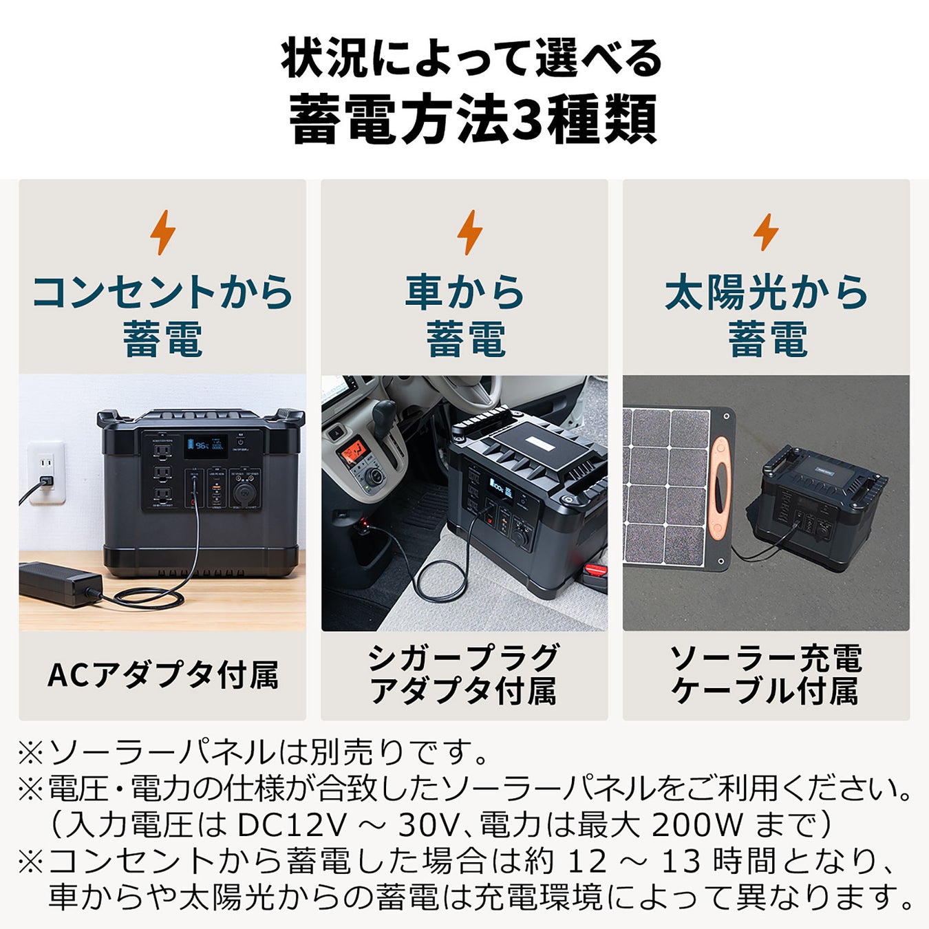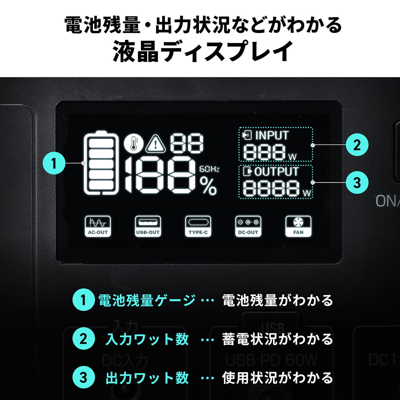 本製品は、暖房器具や調理家電など大きな電力を使用する機器が使える、最大1000WまでのAC出力に対応した大容量1120Whのポータブル電源です。