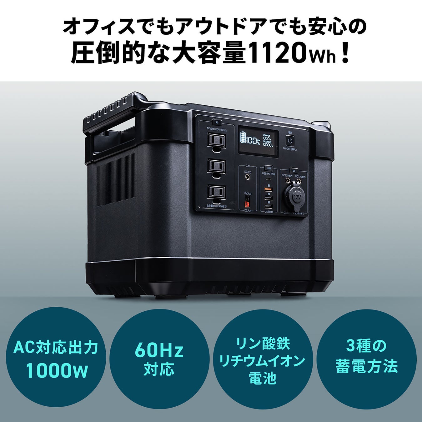 ポータブル電源 大容量 1120Wh AC出力対応 PD60W リン酸鉄リチウムイオン電池 モバイルバッテリー ポタ電