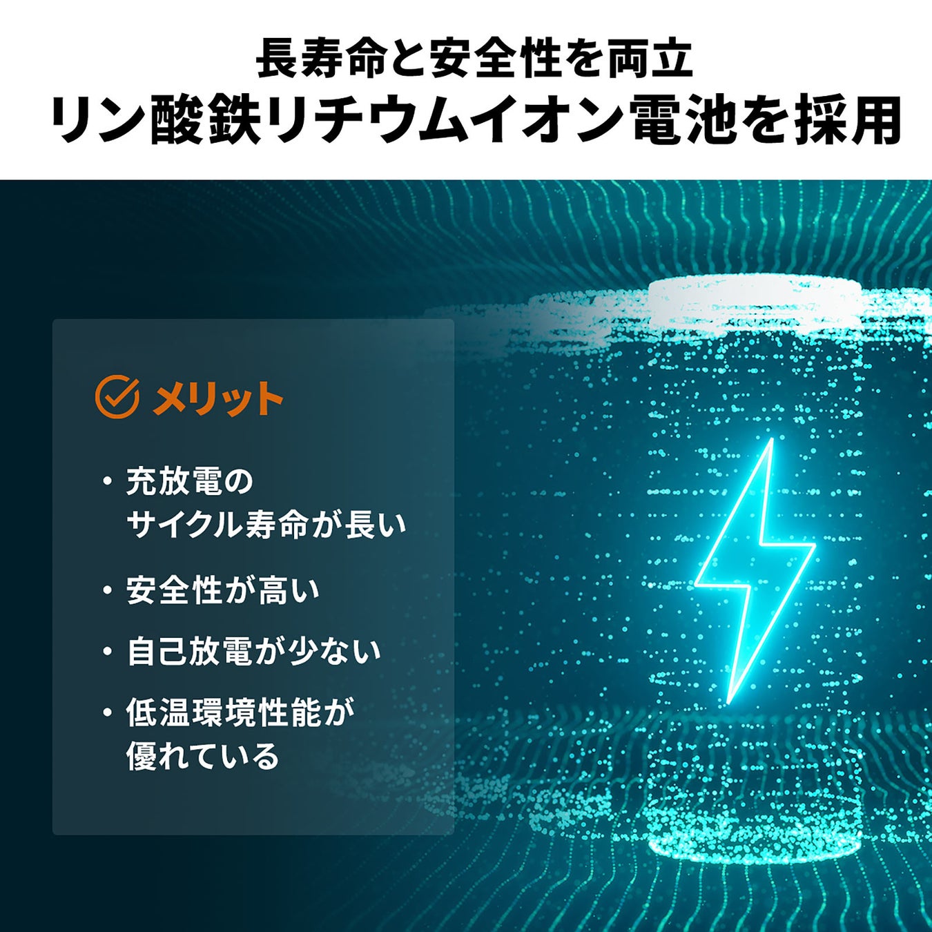 搭載電池には電気自動車などにも採用されている、長寿命と安全性を両立させたリン酸鉄リチウムイオン電池を採用しています。