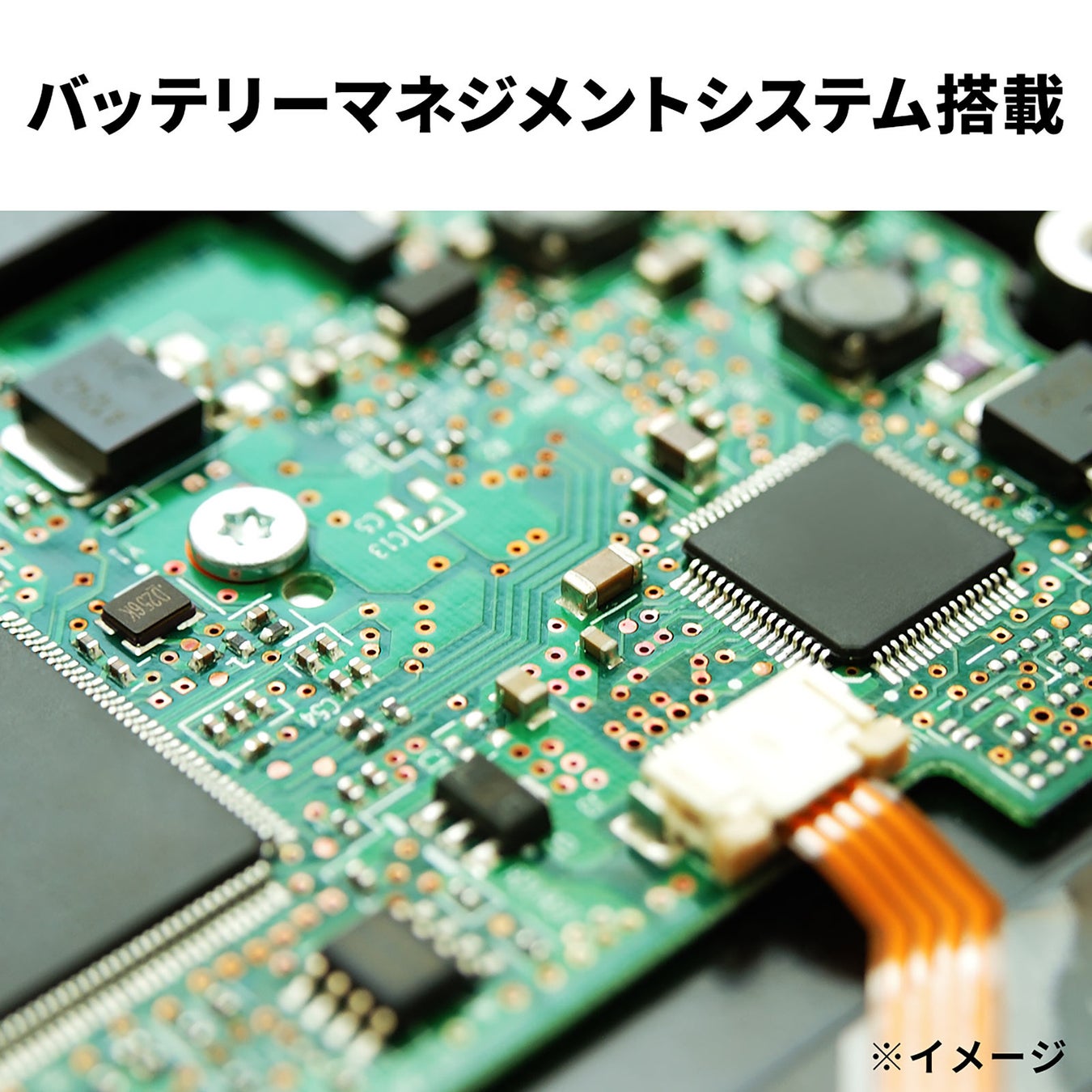 バッテリーマネジメントシステム(BMS)搭載の安心設計です。