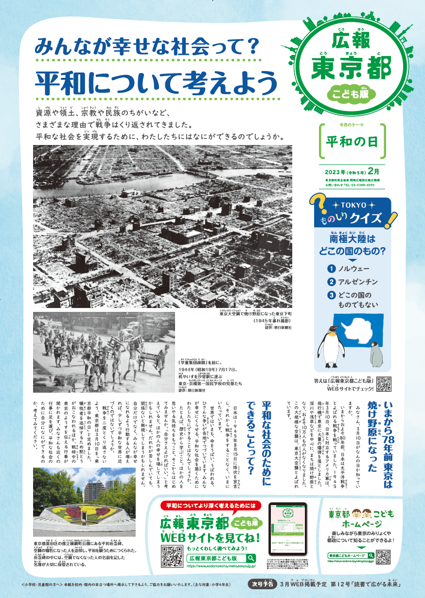 子供たちの「なぜ?」「なに?」を刺激し自らで考える力を伸ばす、広報東京都こども版 2月号テーマ「みんなが幸せになれる社会って?平和について考えよう」