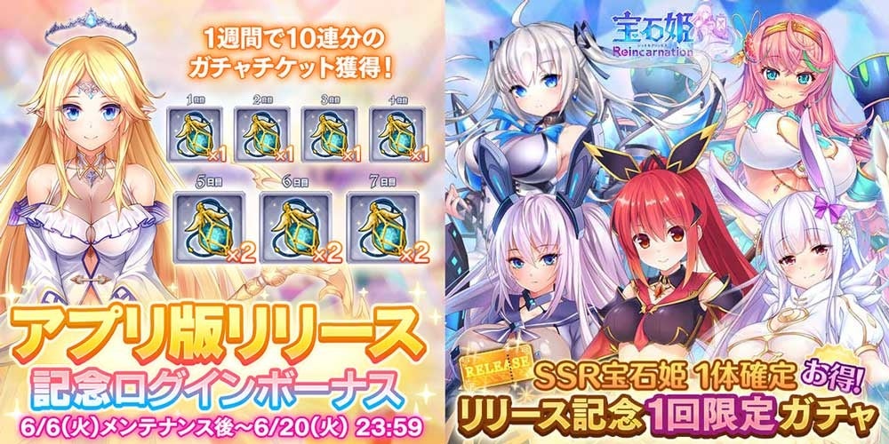▼リリース記念ログインボーナス&SSR宝石姫一体確定リリース記念一回限定ガチャを開催