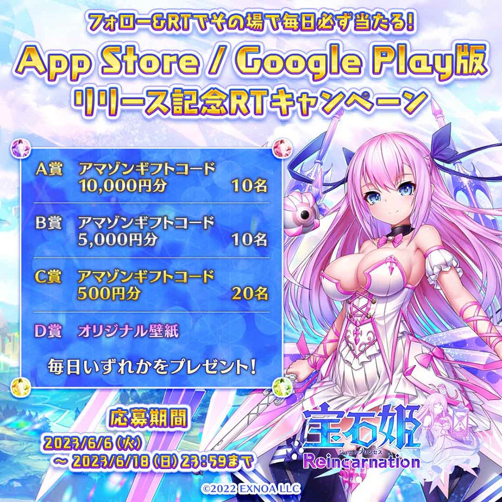 「宝石姫 Reincarnation」App Store/Google Play版のリリースを記念してAmazonギフト券のコードやオリジナル壁紙のいずれかが必ず当たる超豪華なRTキャンペーンを開催!