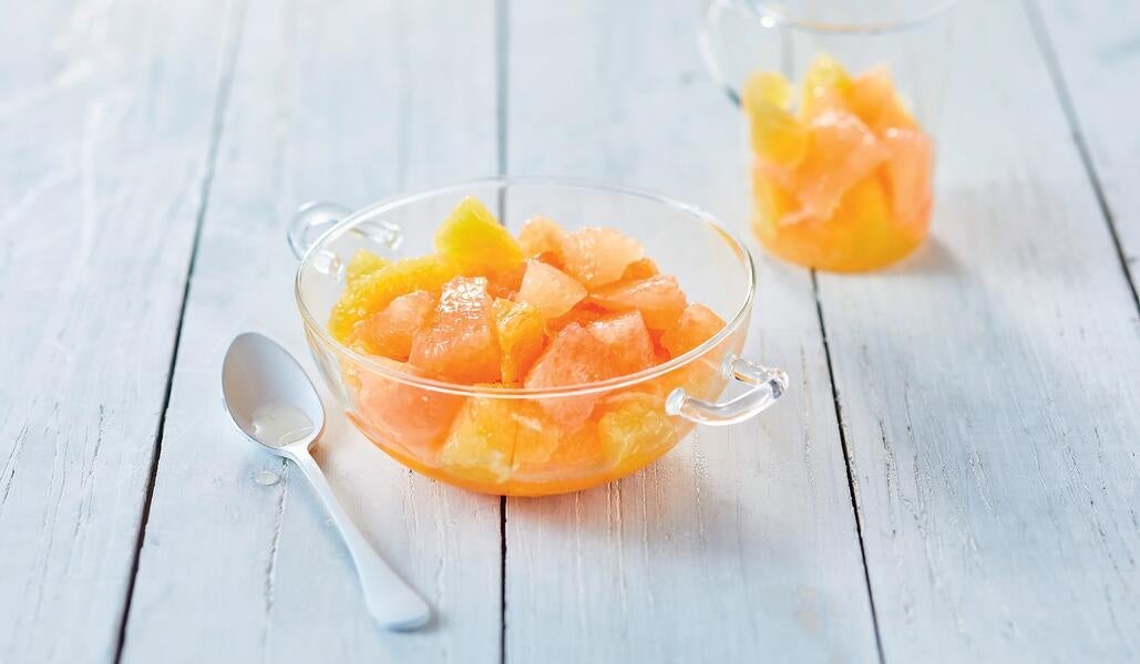 皮むきをしたオレンジとピンクグレープフルーツをカットし、急速冷凍しました。丁寧に皮むきがされているので、解凍すれば、そのまますぐに召し上がれます。