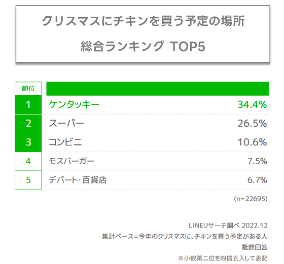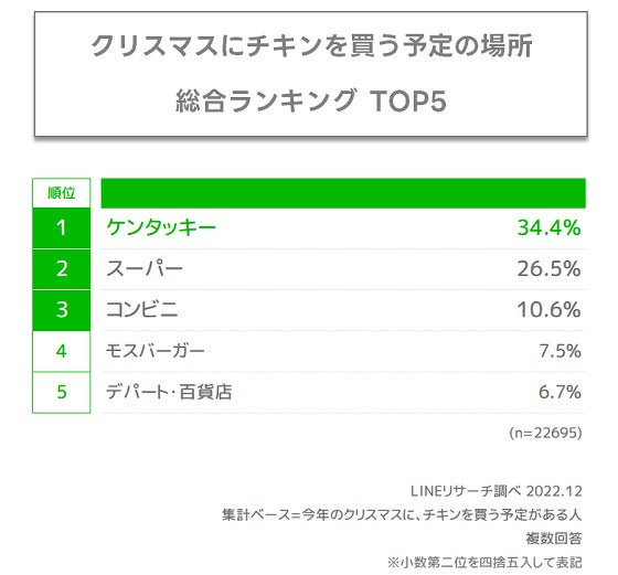男性はすべての年代で、女性は10代~40代で「ケンタッキー」が1位となり、女性50代以降は「スーパー」が1位という結果となりました。
