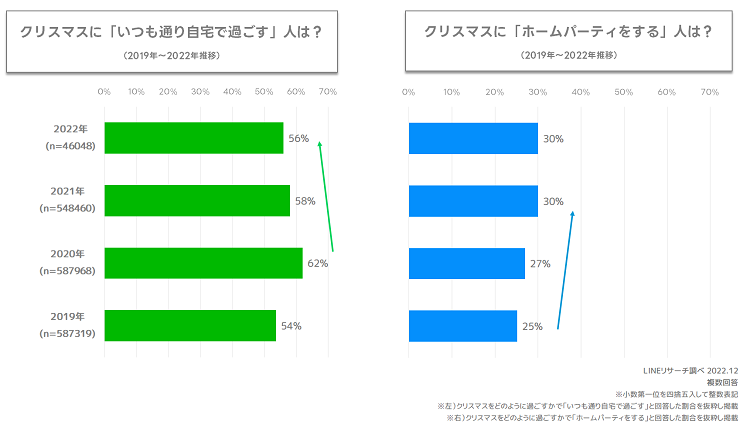 【LINEリサーチ】今年のクリスマスを過ごす相手は「家族」が約半数、「友だちと過ごす」はやや増加傾向