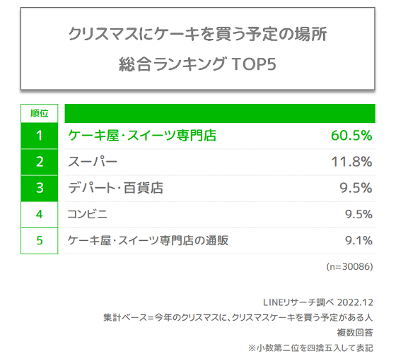 グラフにはありませんが、クリスマスケーキを実際の店舗で買う人の割合は8割超、ネットで買う人の割合は1割超となりました。