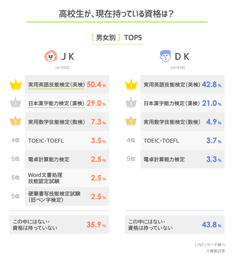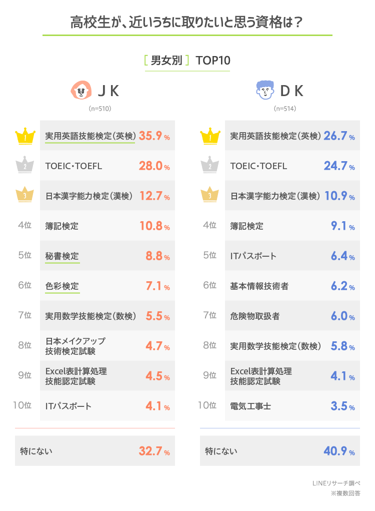 このたびLINEリサーチでは、日本全国の高校生を対象に、なりたい職業や取りたい資格などについて調査しましたので、その結果をお知らせいたします。