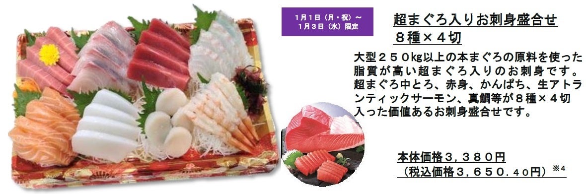今年の年末年始は、家族や親戚、友人などが集い、リアルなふれあいを一緒に楽しむニーズが一段と高まると見込まれます。こうしたなか当社は、子どもから大人まで幅広いお客さまに、お出かけ先としてのイオンをより一層楽しんでいただく企画を昨年より1.4倍の最大280企画※2に拡充します。また、「超まぐろ入りお刺身盛合わせ」や「彩り贅沢(ぜいたく)海鮮手巻き寿司」、「肉を味わう紅白チーズバーガー」など、大人数で楽しめる「ごちそうメニュー」を用意します。