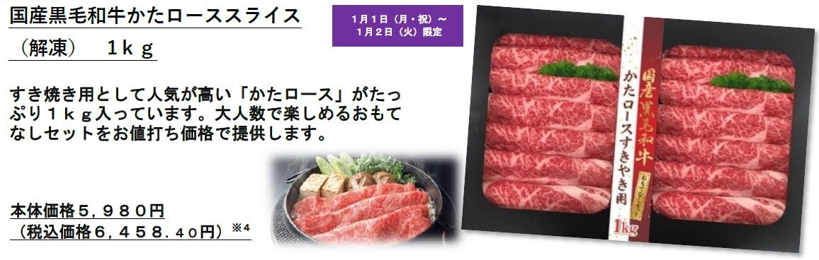 さらに、2024年1月1日(月・祝)~1月4日(木)の期間に使用できるお買物アプリ会員さま向けのお買物アプリ値引きクーポンを約90品目進呈します。
