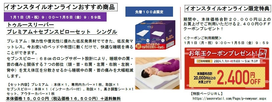 イオンのオンラインショップ「イオンスタイルオンライン」「イオンネットスーパー」「イオンショップ」でも「イオン 超!初売り」を実施します。