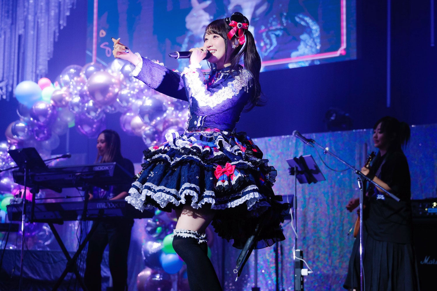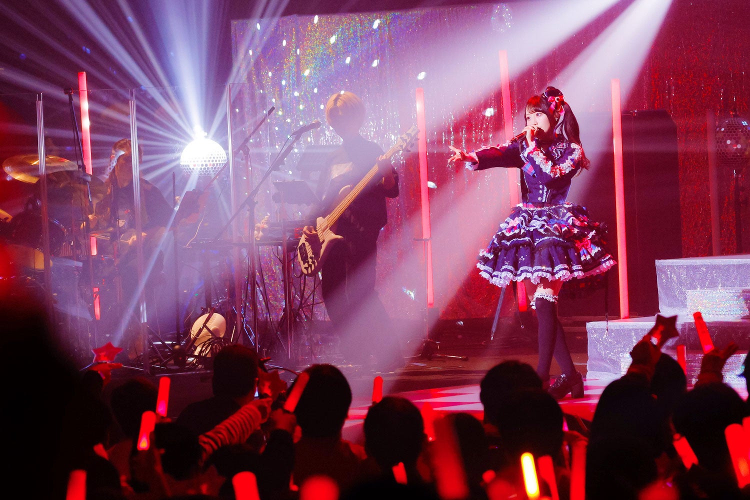 今回は、単独イベントでは初となる生バンドによるライブ。鮮やかな晴れ着姿から、ネイビーを基調としたロックなライブ衣装に着替えた小倉は、「Destiny」を皮切りに、「God knows...」のカバーなど、全6曲を披露。新年の幕開けに相応しいラインナップで会場を盛り上げた。