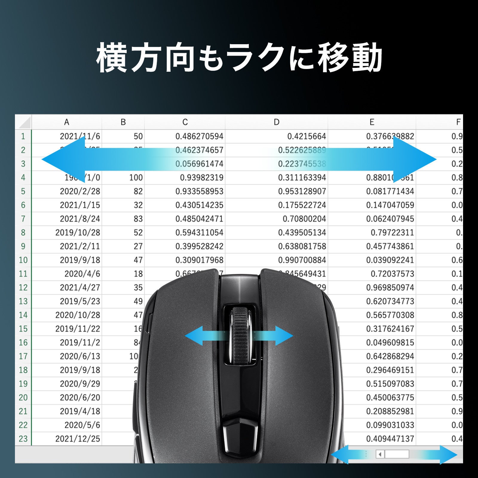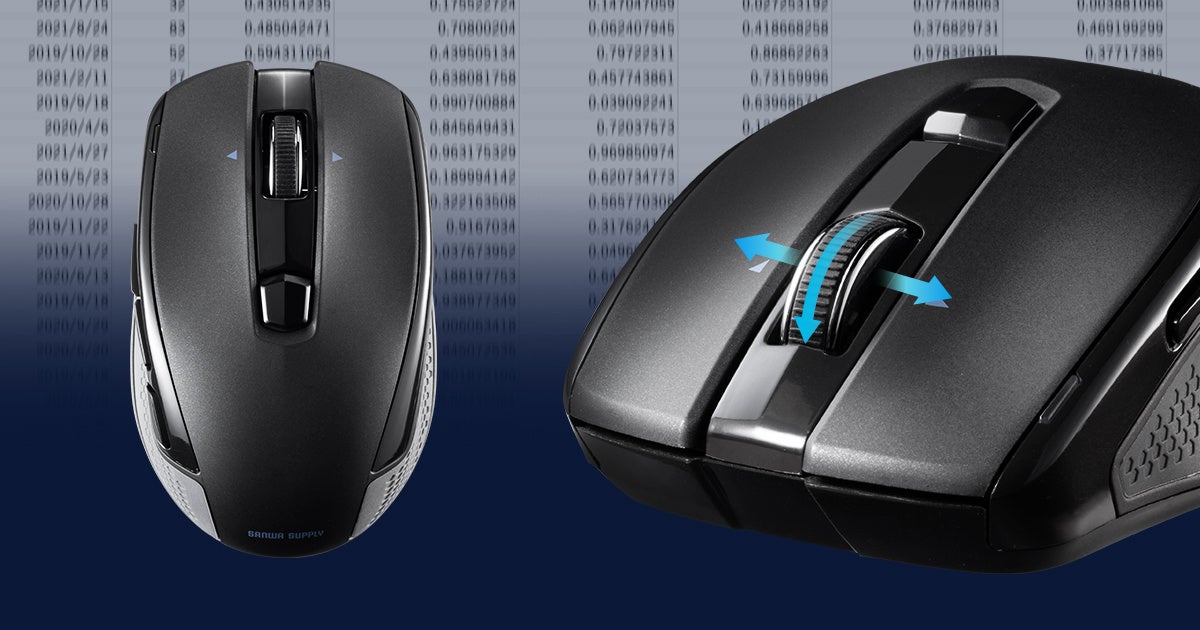 ホイールを傾けるだけで左右にスクロールできるチルトホイールを採用しており、表計算ソフトやWebページなど横に長い画面操作に便利です。