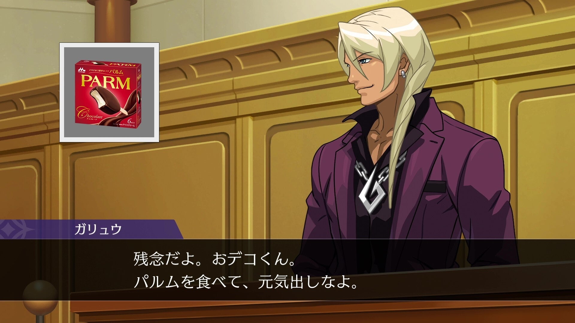 法廷の議題は「『逆転裁判456 王泥喜セレクション』に登場するキャラクターの中で、パルムとのコラボにふさわしい人物を決める」というもの。