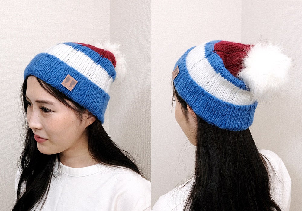 ・ちくわの革パッチがワンポイントでアクセントになっているのもなでしこニットキャップの可愛らしさを引き立たせます。