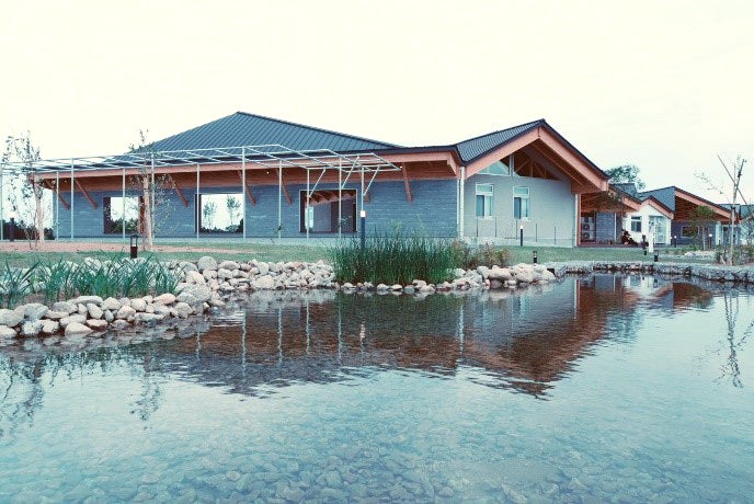 さまざまな人が農業に関わり(つくる)、美味しくて体によい食(たべる)を通じて、たくさんの人が大熊町とつながる(であう)場所です。これを実現するべく、「高付加価値農業生産エリア」「食を楽しむエリア」「様々なプロフェッショナルがつながるワーケーション滞在エリア」の3つのエリアで構成する建物と、「大熊町と様々な人がつながる」半屋外エリアと「大熊町の自然の景色とつながる」屋外エリアの5つで構成されています。