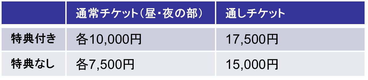 【チケット料金】 ※税込表記 ※通しチケットは、昼夜公演で同一の座席番号となります。