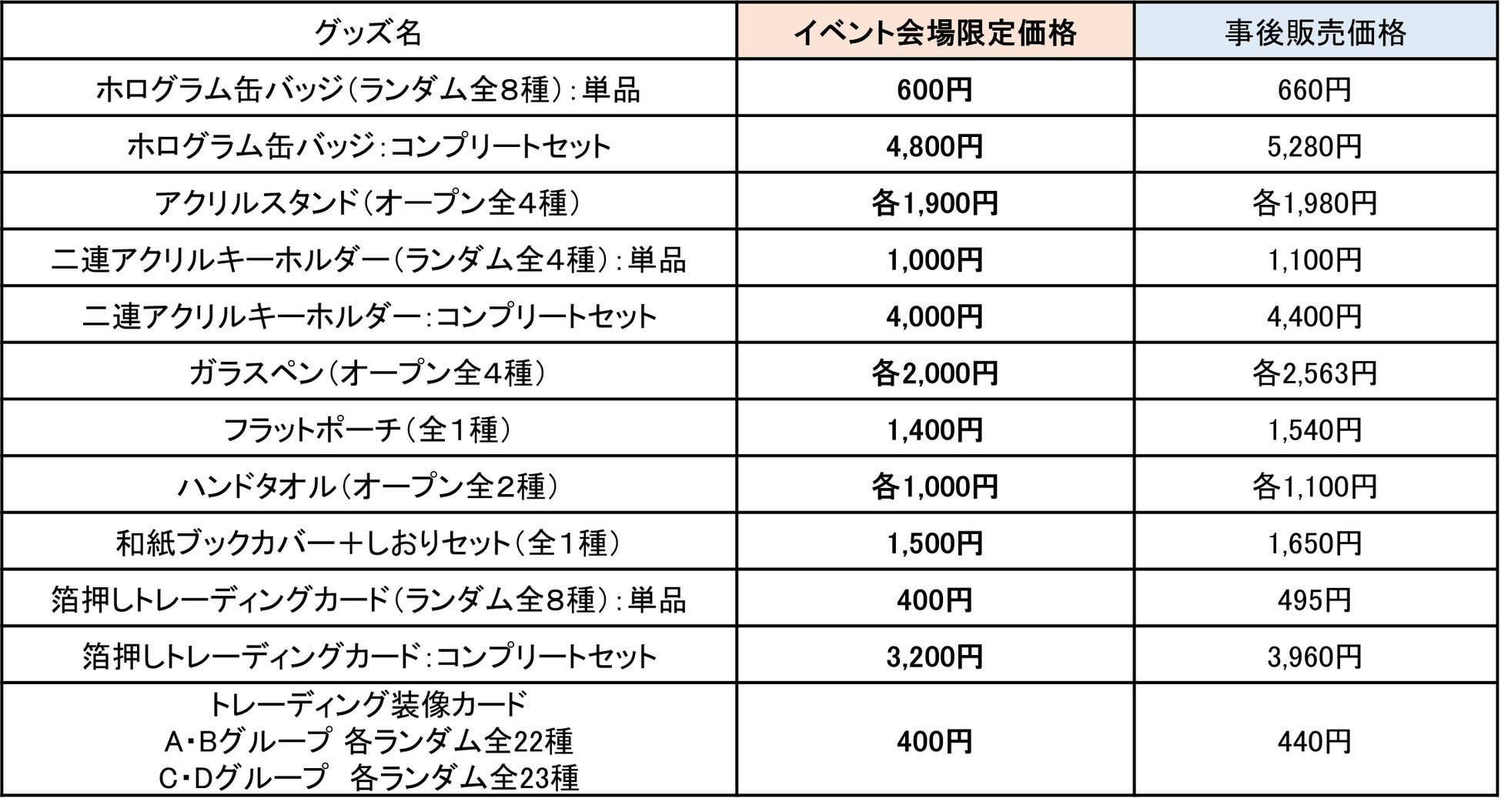 描き下ろしイラストを使用したグッズや、普段使いしやすいアイテムなど、本イベント限定のオリジナルグッズを、イベント会場限定価格で販売します。